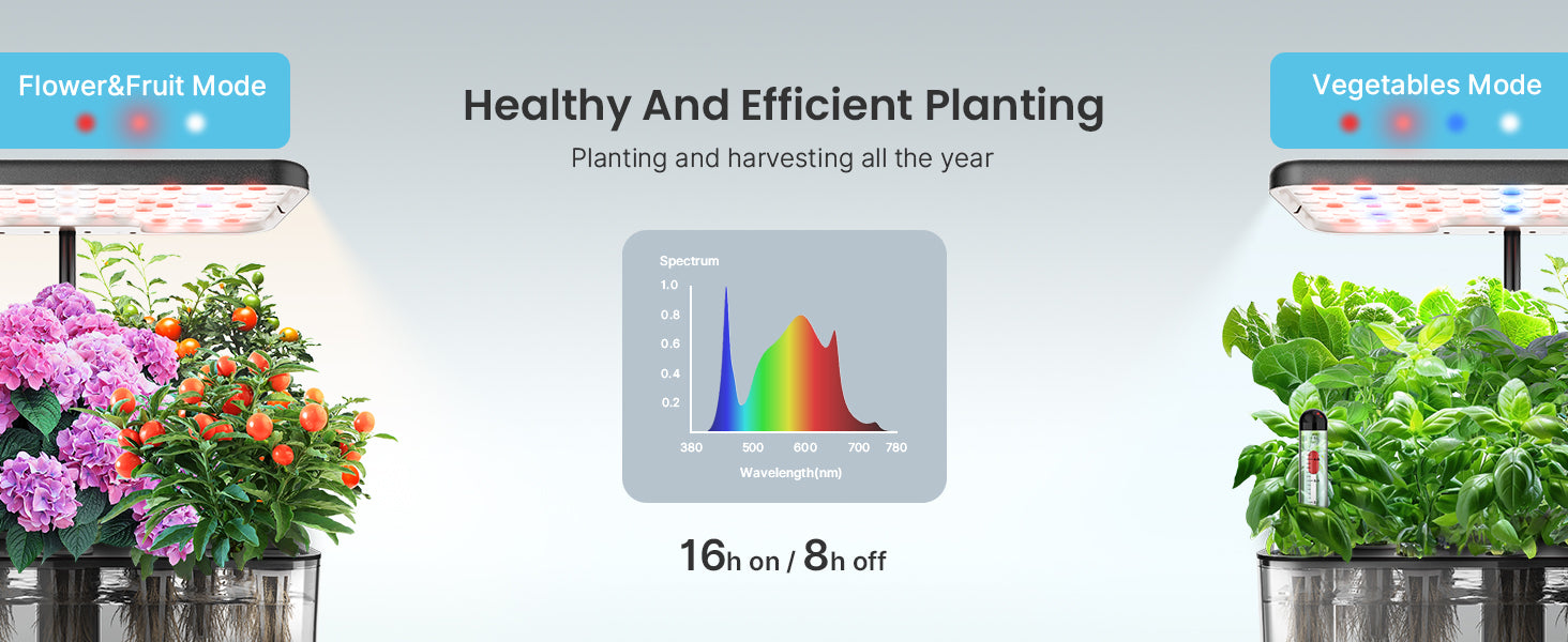 - Full-Spectrum Grow Lights: Simulates sunlight for 16 hours to boost plant growth in any weather.