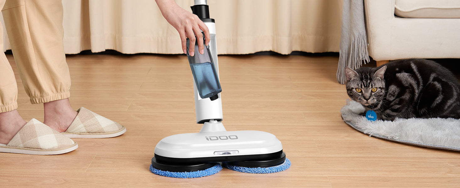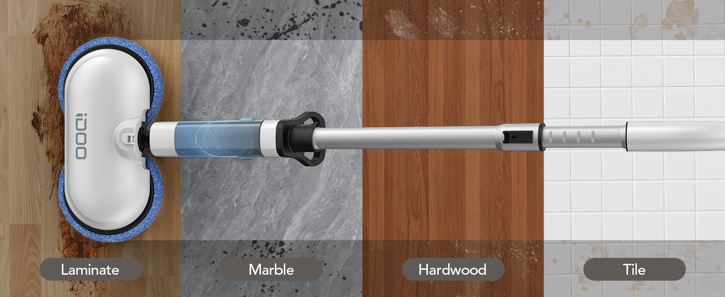 - Powerful & Ultra-Quiet Cleaning: Dual-motor spins at 280r/min to remove stains and dust effortlessly on hardwood, tile, laminate, and marble floors—operating as quietly as 46 dB.