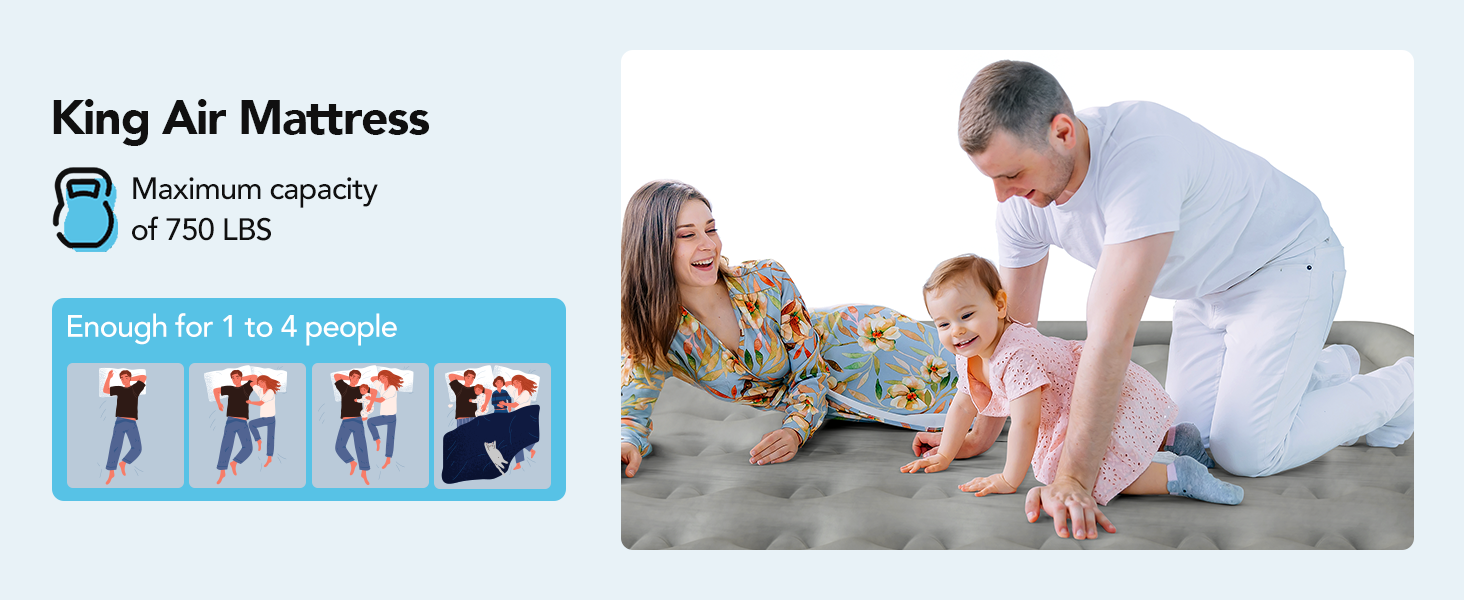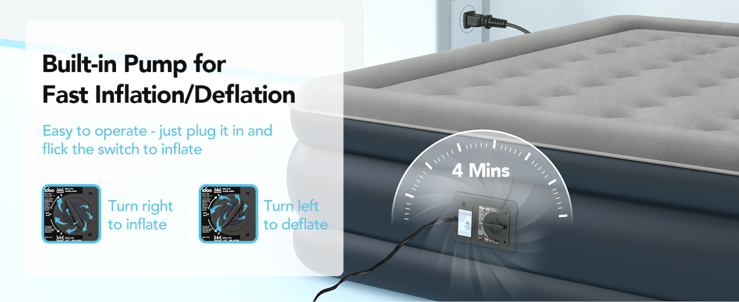 - Upgraded Air Pump: Built-in electric air pump for quick, hassle-free inflation and deflation—no manual valve needed, reducing leaks and setup time.
