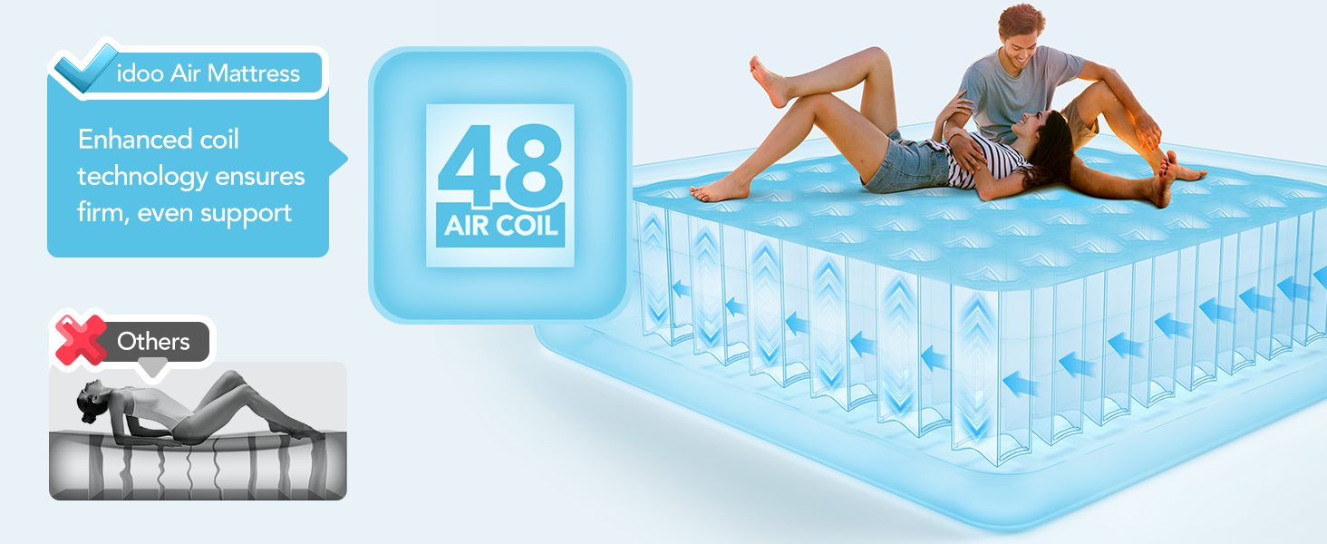 - Four-Chamber Support: Innovative four-chamber structure with 40 air coils provides superior support and comfort, holding up to 800 lbs.
