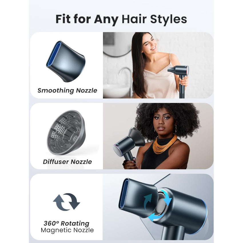 - Magnetic Nozzle & Diffuser: Perfect for drying thick curls, braids, and dreadlocks while maintaining style.
